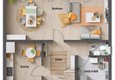 Wohnzimmer und Essbereich sind miteinander verbunden und die geräumige Küche wird schnell zum beliebten Familientreffpunkt. Bei Bedarf, zum Beispiel für das Büro zu Hause, kann im Erdgeschoss noch ein weiteres Zimmer eingeplant werden. Das "Flair 110" ist großzügig gestaltet, sowohl im Schlaf-, Kinder- und Gästezimmer, als auch im Bad. Dieses Familienhaus überzeugt mit seinem Charme.